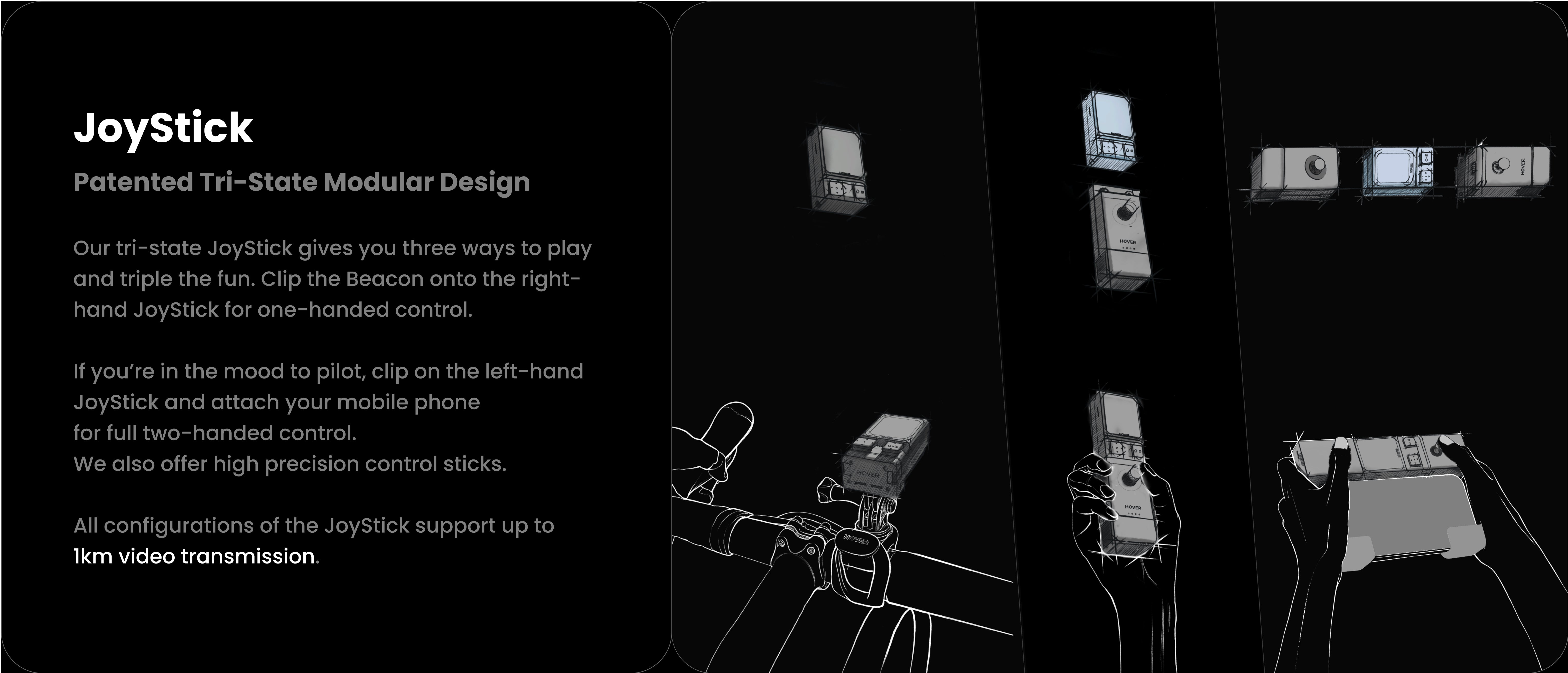 If you're in the mood to pilot, clip on the left-hand JoyStick and attach your mobile phone for full two-handed control. We also offer high precision control sticks.