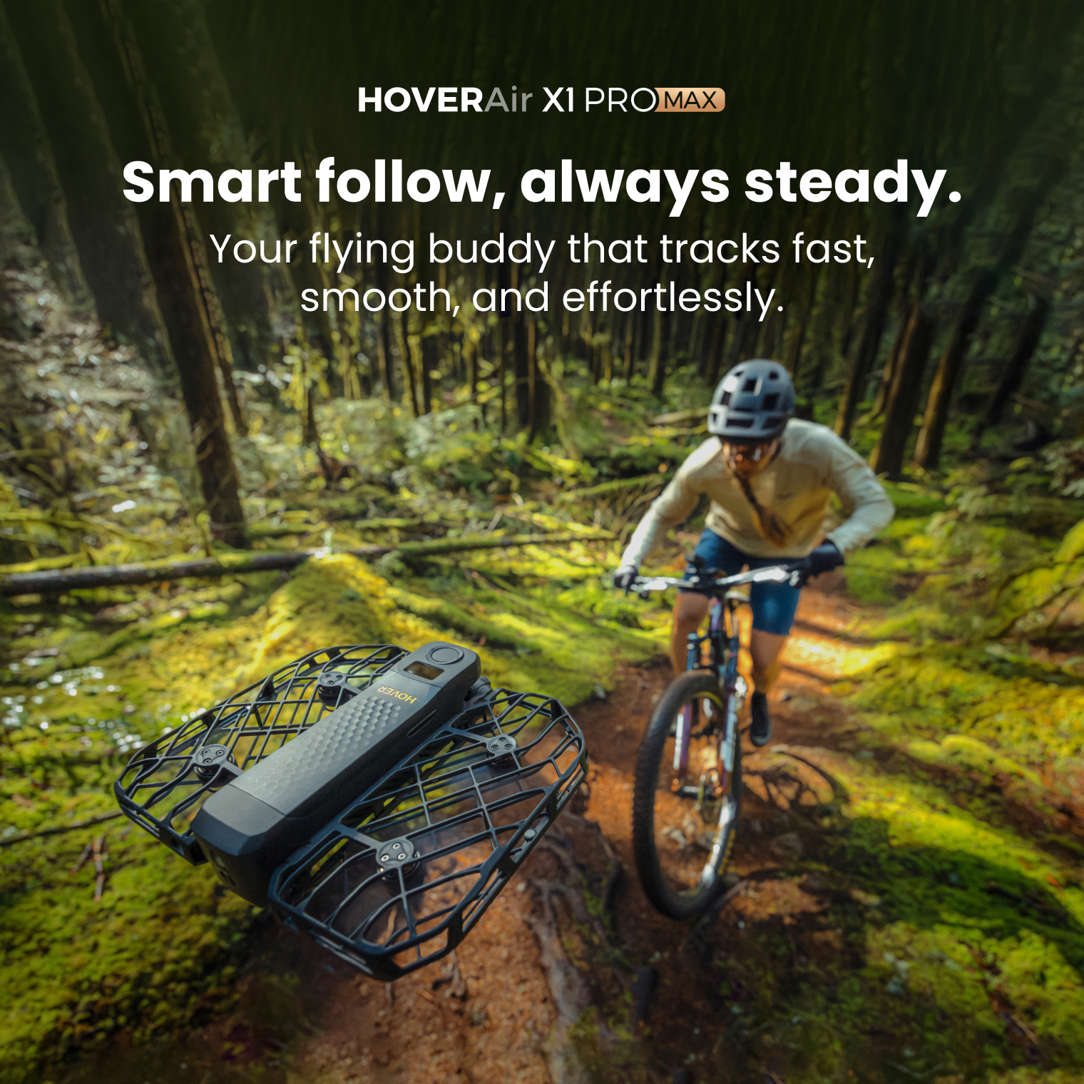 PRO/PROMAX is a self-flying camera that flies itself, frames itself, and thinks for itself. No controller, no piloting—just lift it from your palm and let it follow. From skiing to cycling to indoor adventures, it’s the only flying camera that truly goes on autopilot—staying steady, staying aware, and not losing track.