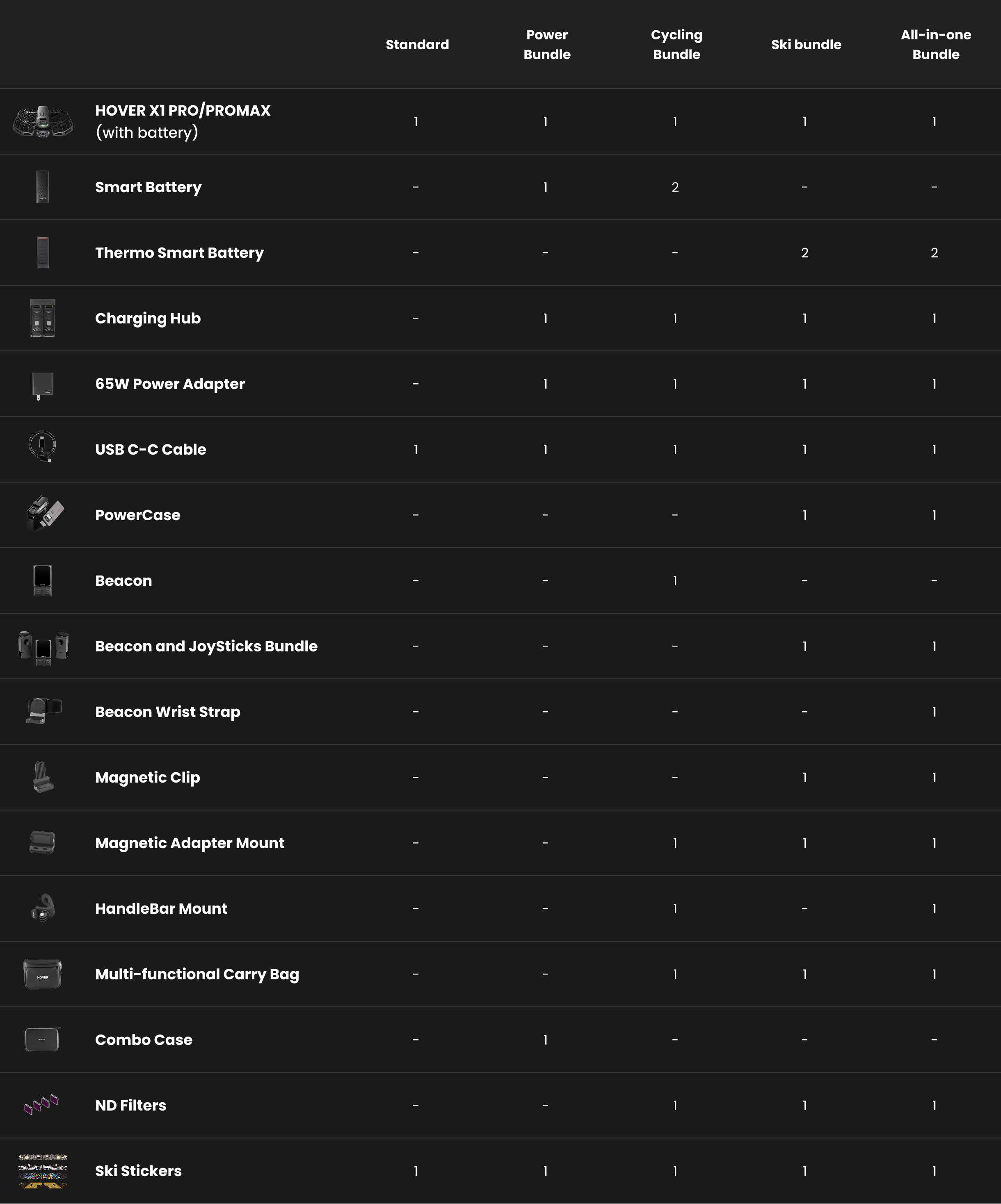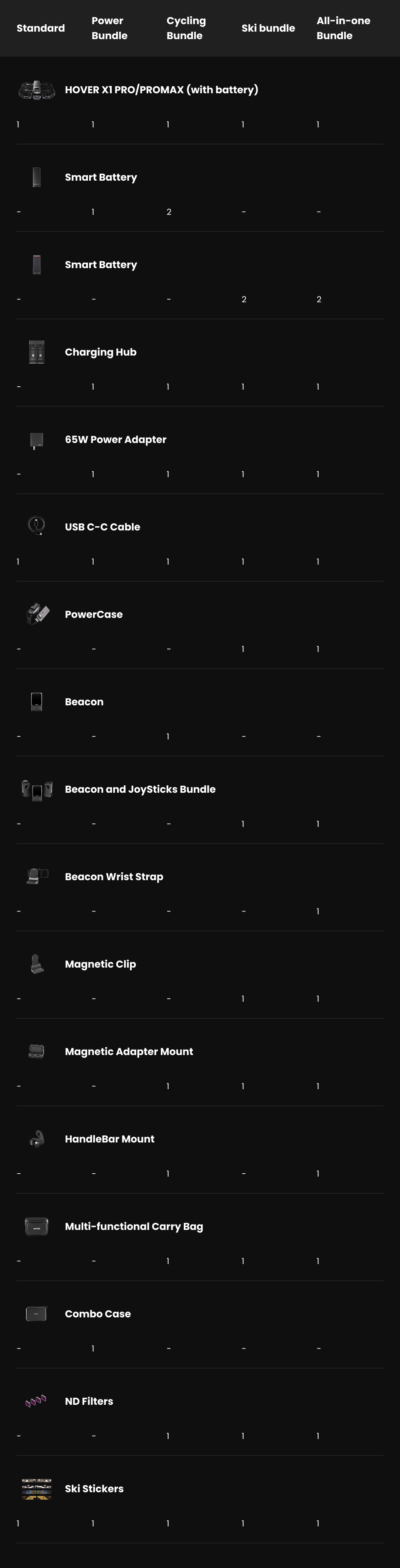 | *Measured under test conditions. The test setup involved a 20-meter altitude, no wind, steady forward flight at 2 m/s, with 1080P@30fps recording (without interruptions), from a full battery to 0%. Results may vary depending on external conditions, usage, and firmware versions; actual performance may differ. | |||||||||||||||||||||||||||||||||